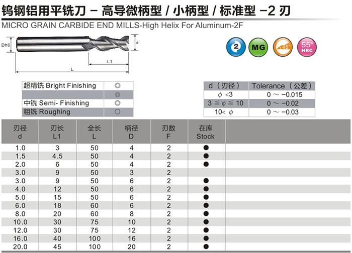 钨钢铝用平铣刀-高导微型柄/小柄型/标准型-2刃